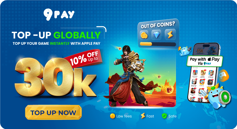 Great news for gamers! 9Pay now supports Apple Pay, allowing you to top up your favorite games instantly, securely, and from anywhere around the world.
